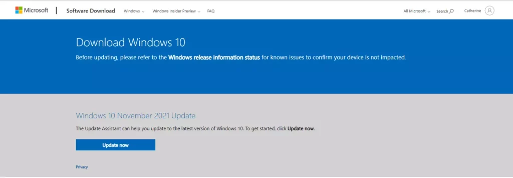 - Selecione Atualizar este PC agora e siga as instruções apresentadas no ecrã.